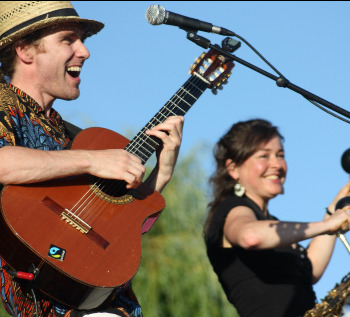 Pete and Frankie are "Mambo Jambo" a self-styled and eclectic musical duo who put a capital "F" in fun - they play a vast array of instruments, from beat-box, guitars, percussion, flute, clarinet, harmonica and more, which perfectly frames their joyous mashup of world, roots, folk and other genres, but all done with huge talent and stage presence....